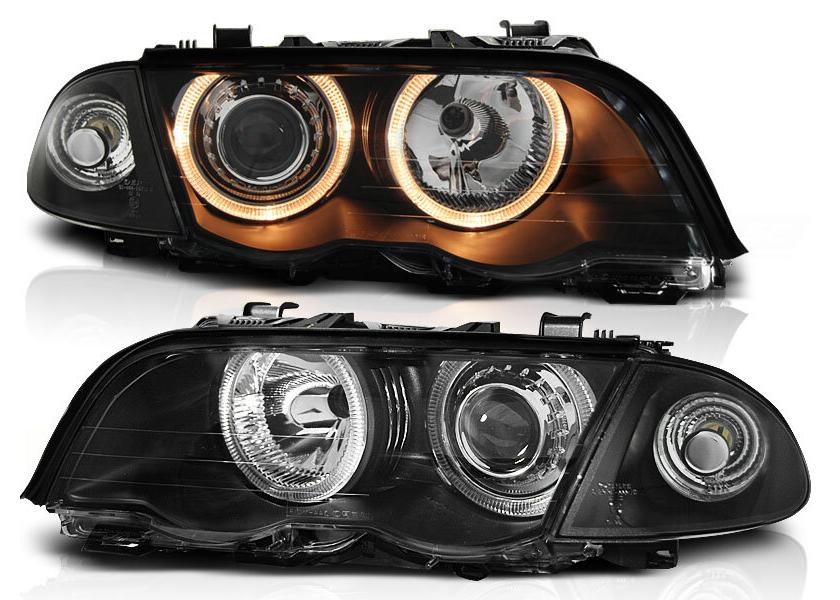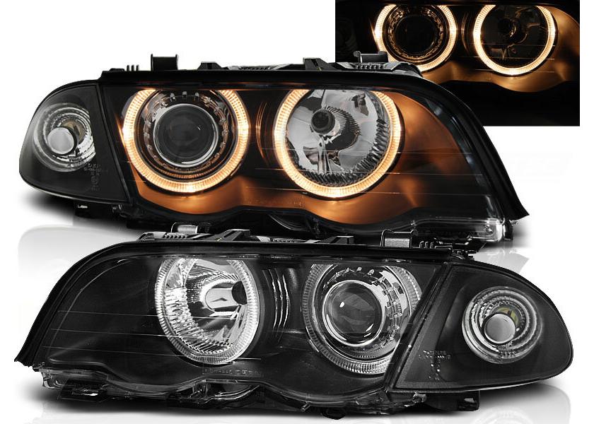 set faruri angel eyes pentru bmw e46 limousine / touring fundal negru