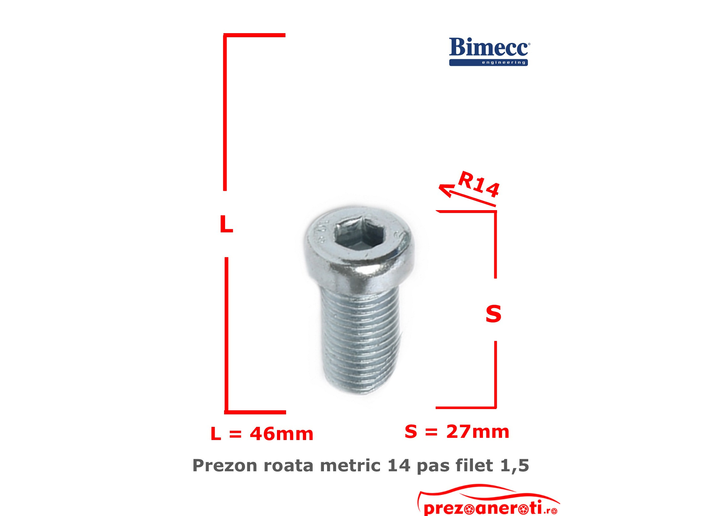 Prezon roata cu cap conic scurt (short head)